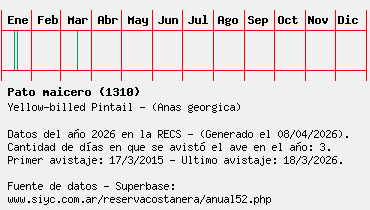 Lista avistajes en la RECS para una especie definida: 1310 - Pato maicero