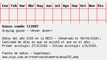 Lista avistajes en la RECS para una especie definida: 1320 - Ganso común