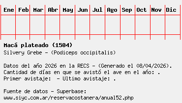 Lista avistajes en la RECS para una especie definida: 1504 - Macá plateado