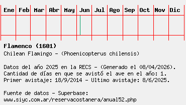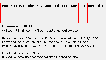 Lista avistajes en la RECS para una especie definida: 1601 - Flamenco