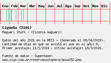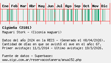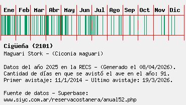 Lista avistajes en la RECS para una especie definida: 2101 - Cigüeña