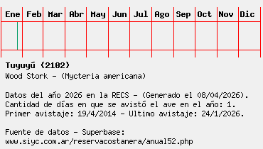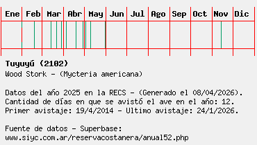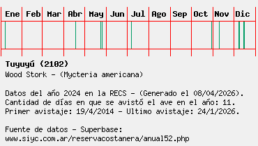 Lista avistajes en la RECS para una especie definida: 2102 - Tuyuyú