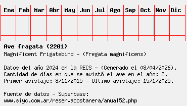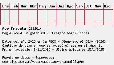 Lista avistajes en la RECS para una especie definida: 2201 - Ave fragata