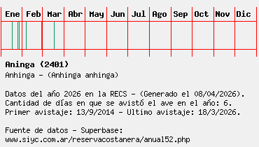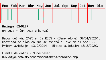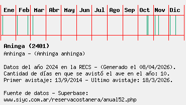 Lista avistajes en la RECS para una especie definida: 2401 - Aninga