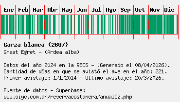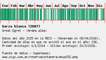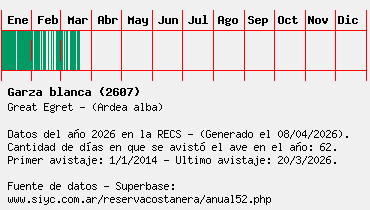 Lista avistajes en la RECS para una especie definida: 2607 - Garza blanca