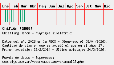 Lista avistajes en la RECS para una especie definida: 2608 - Chiflón