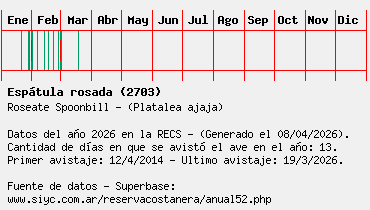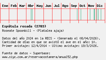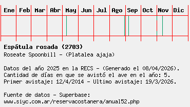 Lista avistajes en la RECS para una especie definida: 2703 - Espátula rosada