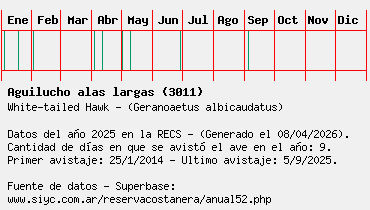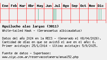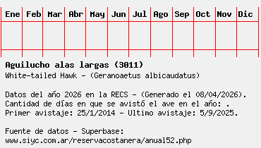 Lista avistajes en la RECS para una especie definida: 3011 - Aguilucho alas largas