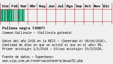Lista avistajes en la RECS para una especie definida: 3207 - Pollona negra