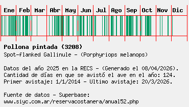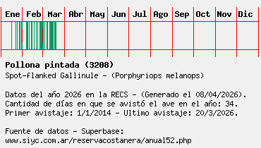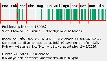 Lista avistajes en la RECS para una especie definida: 3208 - Pollona pintada