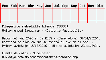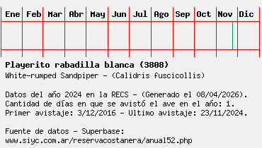Lista avistajes en la RECS para una especie definida: 3808 - Playerito rabadilla blanca