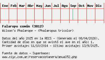 Lista avistajes en la RECS para una especie definida: 3812 - Falaropo común