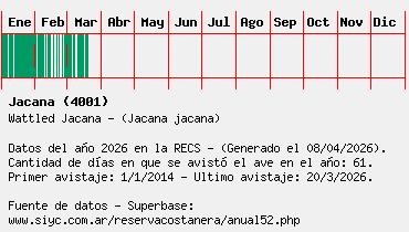 Lista avistajes en la RECS para una especie definida: 4001 - Jacana