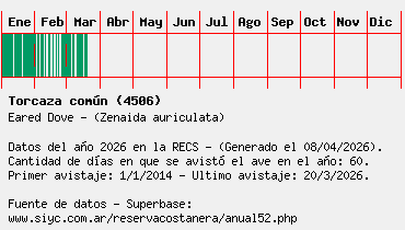 Lista avistajes en la RECS para una especie definida: 4506 - Torcaza común