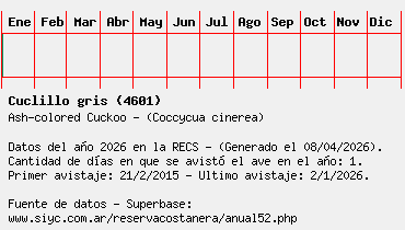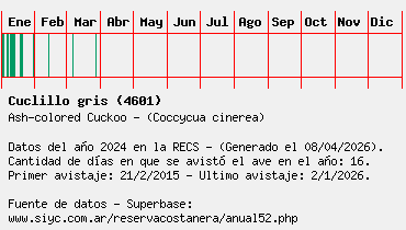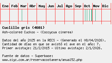 Lista avistajes en la RECS para una especie definida: 4601 - Cuclillo gris