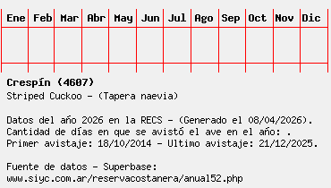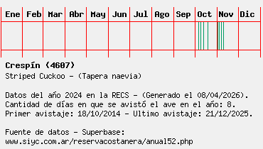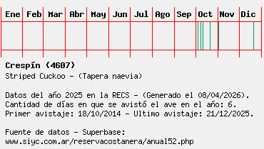 Lista avistajes en la RECS para una especie definida: 4607 - Crespín