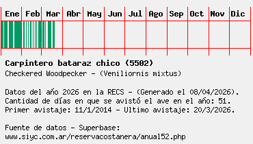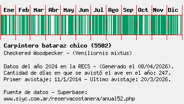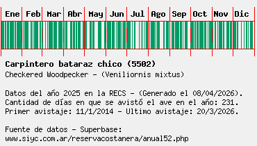 Lista avistajes en la RECS para una especie definida: 5502 - Carpintero bataraz chico