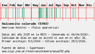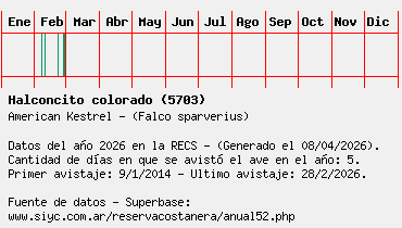 Lista avistajes en la RECS para una especie definida: 5703 - Halconcito colorado