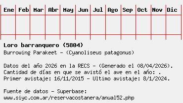 Lista avistajes en la RECS para una especie definida: 5804 - Loro barranquero