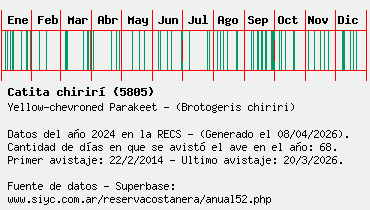 Lista avistajes en la RECS para una especie definida: 5805 - Catita chirirí
