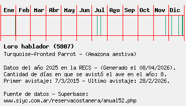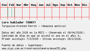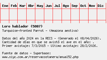Lista avistajes en la RECS para una especie definida: 5807 - Loro hablador