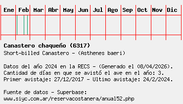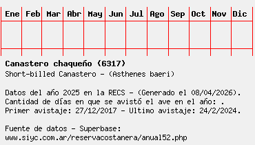 Lista avistajes en la RECS para una especie definida: 6317 - Canastero chaqueño