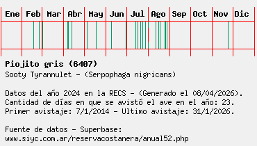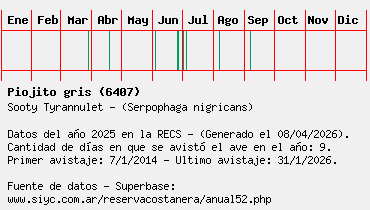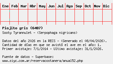 Lista avistajes en la RECS para una especie definida: 6407 - Piojito gris