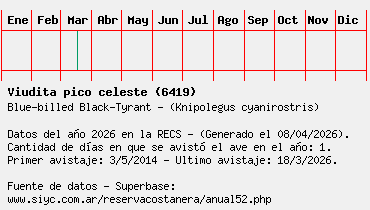 Lista avistajes en la RECS para una especie definida: 6419 - Viudita pico celeste