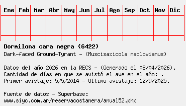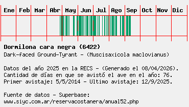 Lista avistajes en la RECS para una especie definida: 6422 - Dormilona cara negra