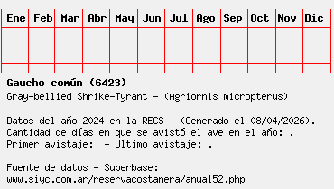 Lista avistajes en la RECS para una especie definida: 6423 - Gaucho común