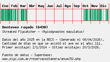 Lista avistajes en la RECS para una especie definida: 6430 - Benteveo rayado