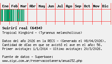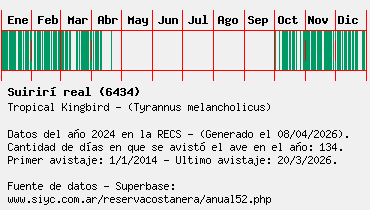Lista avistajes en la RECS para una especie definida: 6434 - Suirirí real