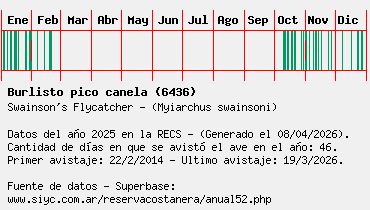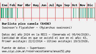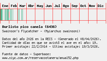 Lista avistajes en la RECS para una especie definida: 6436 - Burlisto pico canela