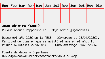 Lista avistajes en la RECS para una especie definida: 6901 - Juan chiviro