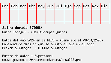 Lista avistajes en la RECS para una especie definida: 7908 - Saíra dorada