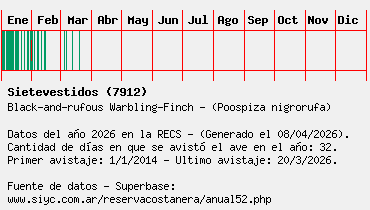 Lista avistajes en la RECS para una especie definida: 7912 - Sietevestidos