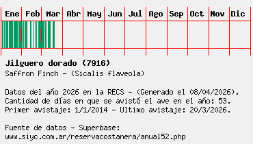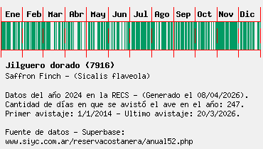 Lista avistajes en la RECS para una especie definida: 7916 - Jilguero dorado