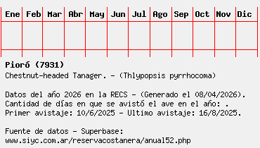 Lista avistajes en la RECS para una especie definida: 7931 - Pioró