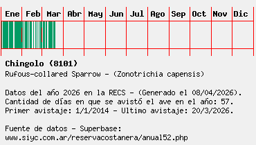 Lista avistajes en la RECS para una especie definida: 8101 - Chingolo