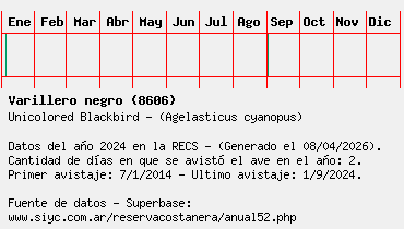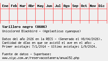 Lista avistajes en la RECS para una especie definida: 8606 - Varillero negro