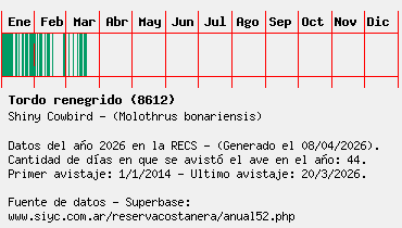 Lista avistajes en la RECS para una especie definida: 8612 - Tordo renegrido