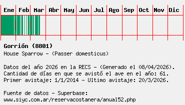 Lista avistajes en la RECS para una especie definida: 8801 - Gorrión