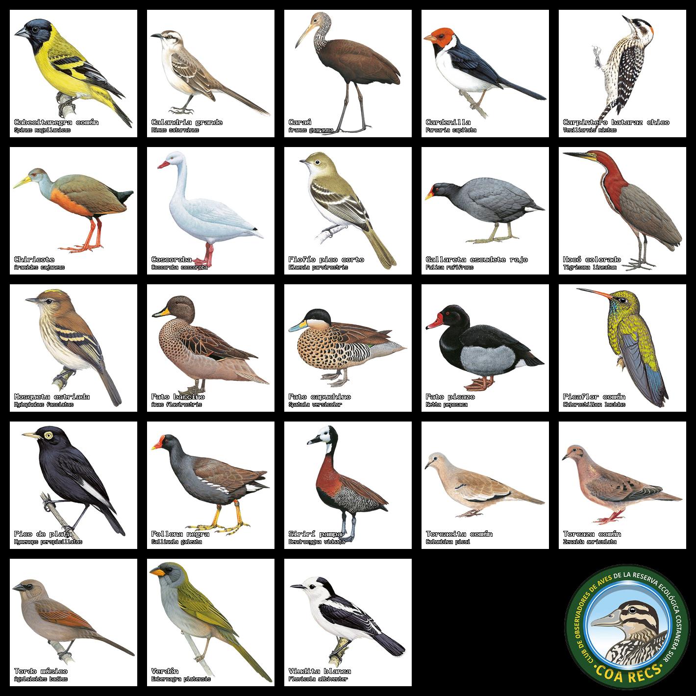 Lista de aves para usar en relevamientos y censos: