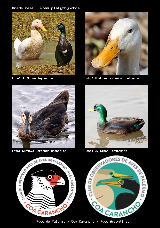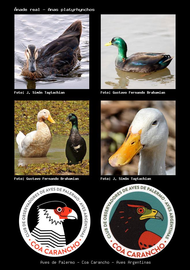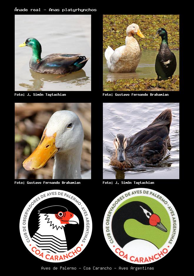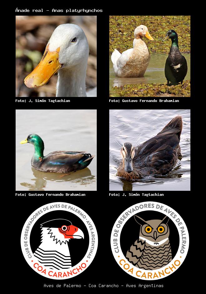| Ánade real - Pato Pekín Mallard Duck Anas platyrhynchos Familia: Anatidae Código: 1315 - Orden: 92 | ![]() J. Simón Tagtachian | ![]() Gustavo Fernando Brahamian |