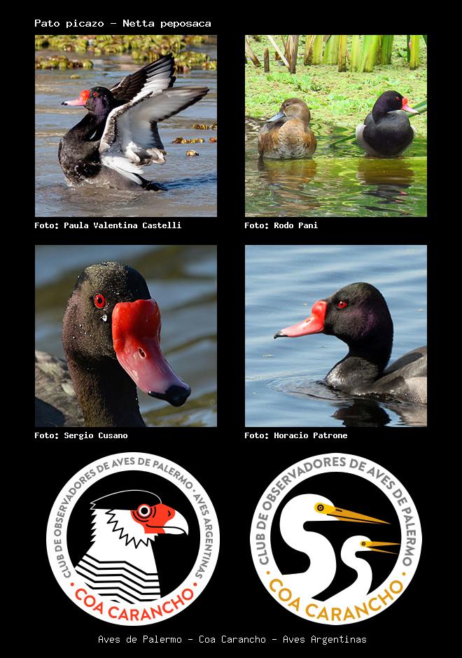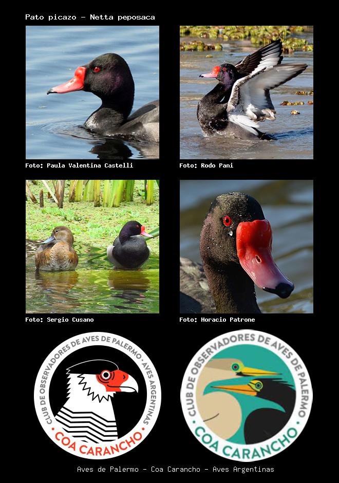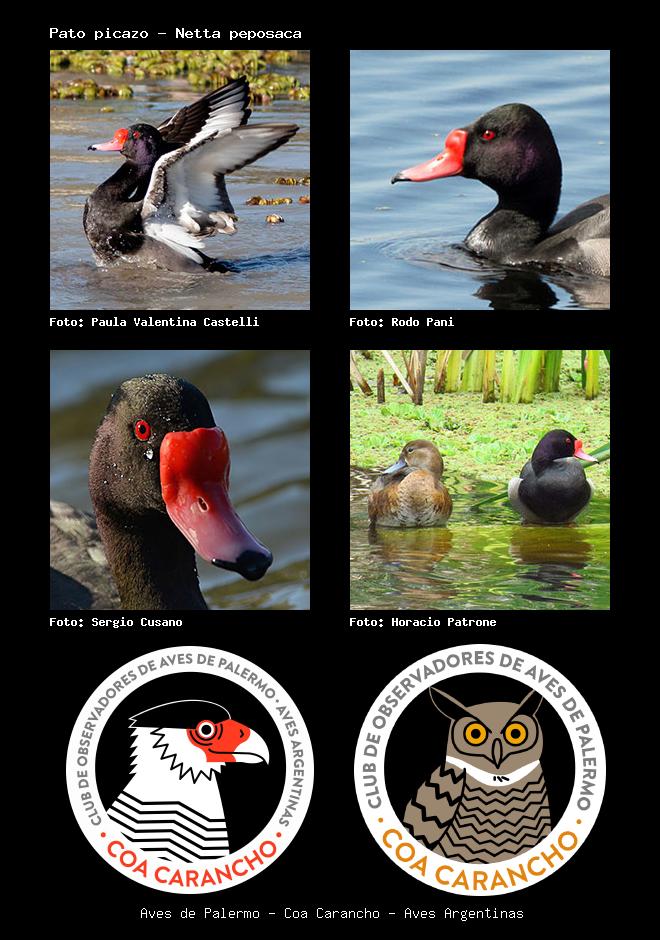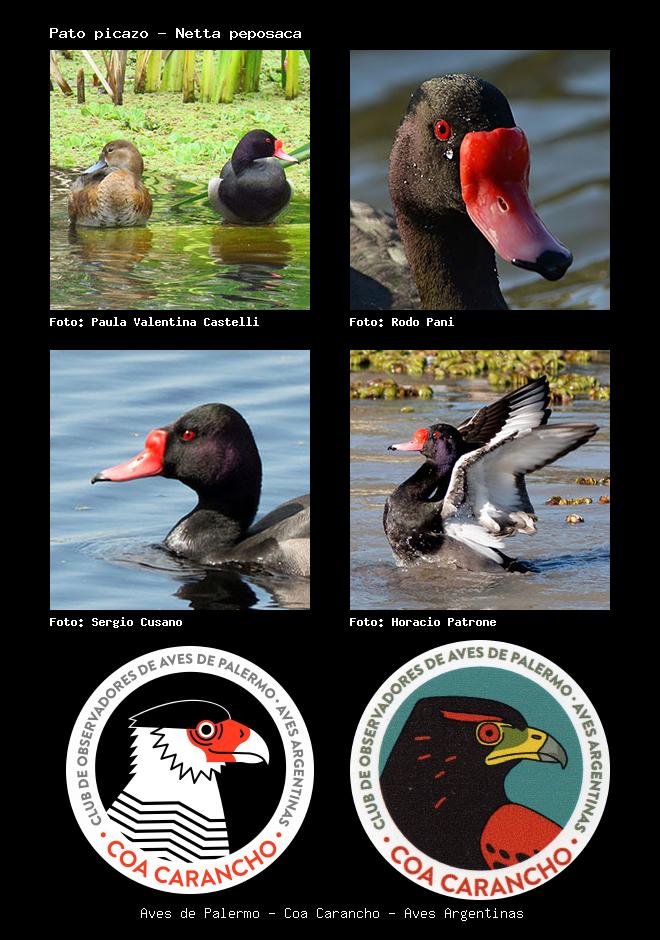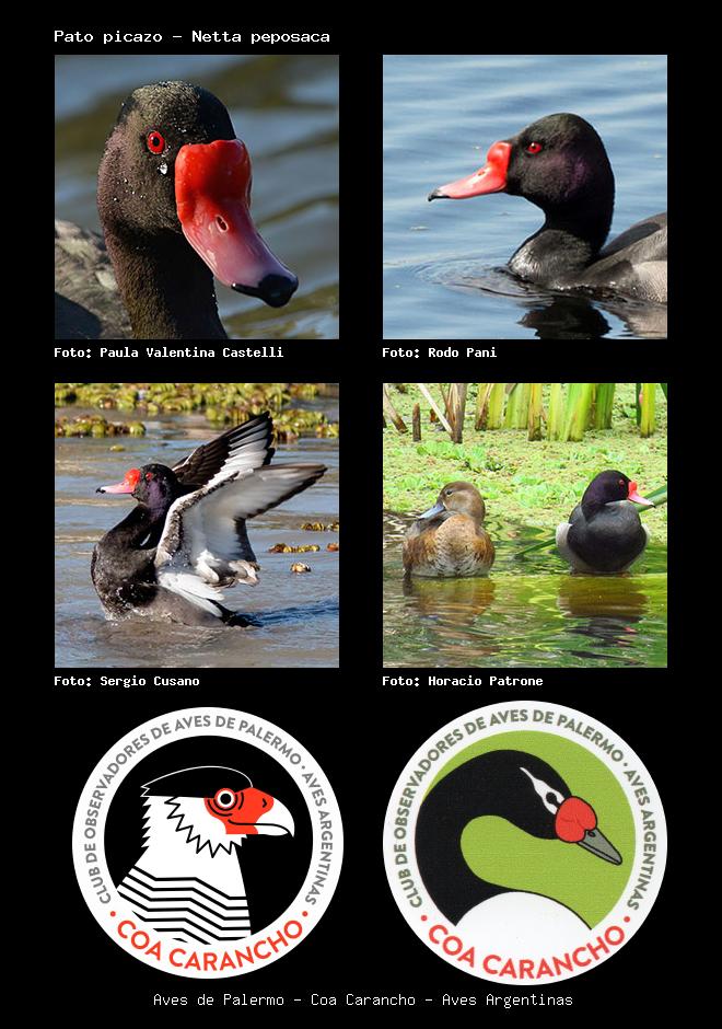 | Pato picazo Rosy-billed Pochard Netta peposaca Familia: Anatidae Código: 1351 - Orden: 71 | ![]() Paula Valentina Castelli | ![]() Rodo Pani |