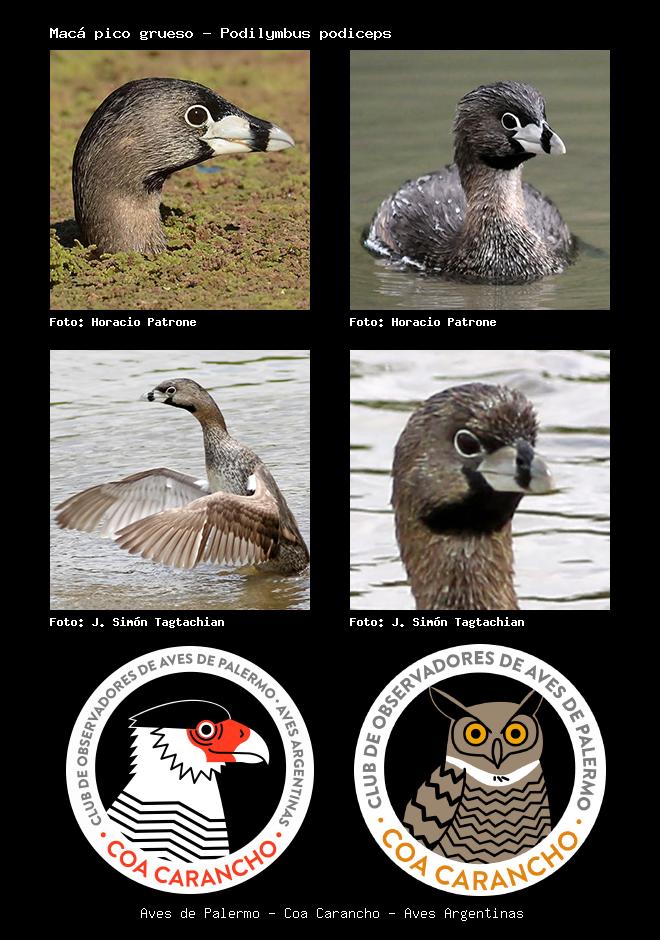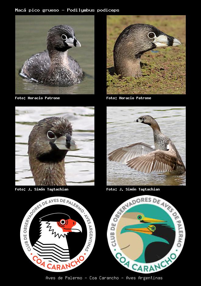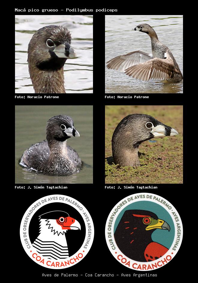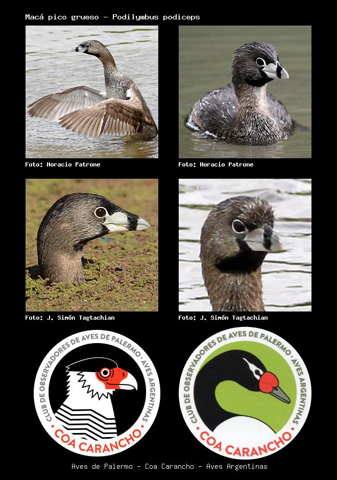 | Macá pico grueso Pied-billed Grebe Podilymbus podiceps Familia: Podicipedidae Código: 1502 - Orden: 61 | ![]() Horacio Patrone | ![]() Horacio Patrone |