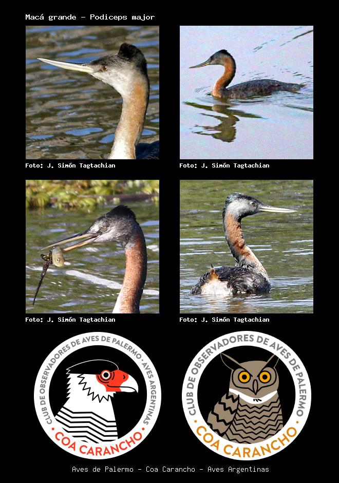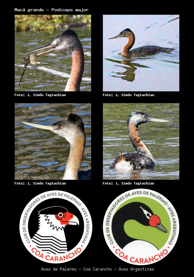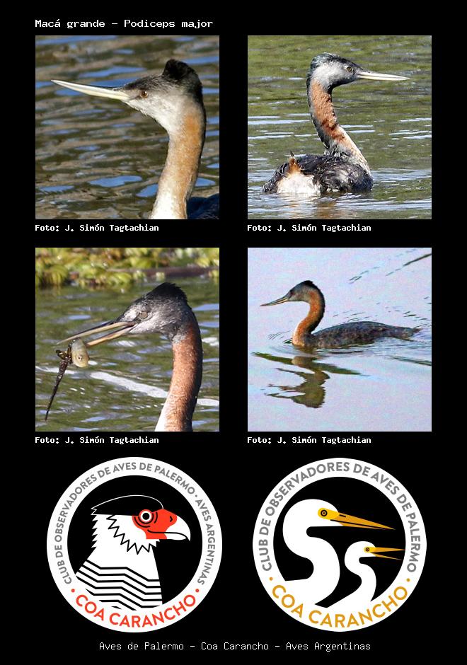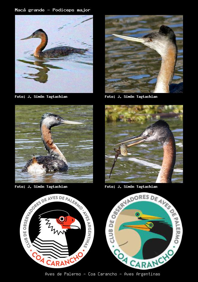 | Macá grande Great Grebe Podiceps major Familia: Podicipedidae Código: 1503 - Orden: 60 | ![]() J. Simón Tagtachian | ![]() J. Simón Tagtachian |