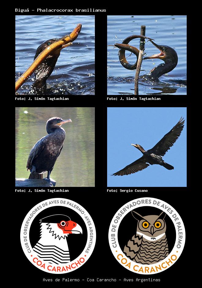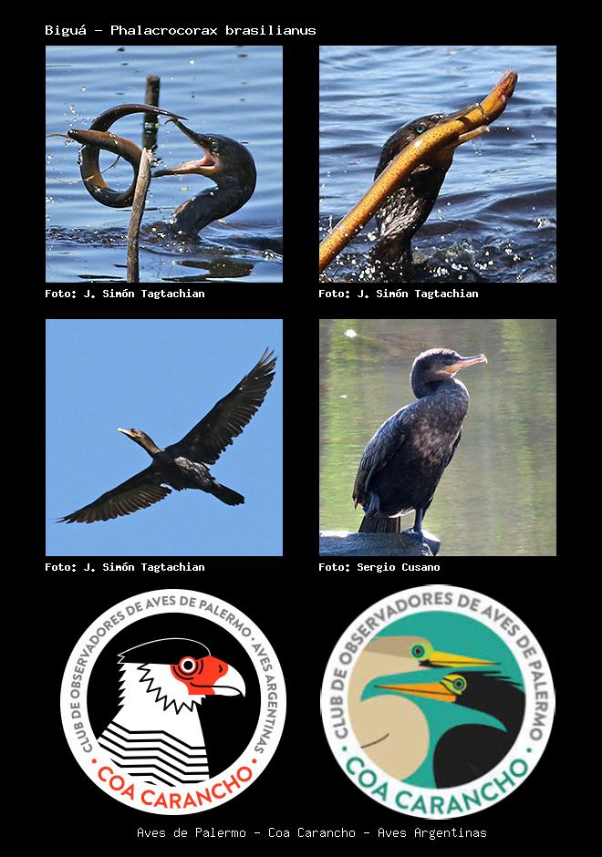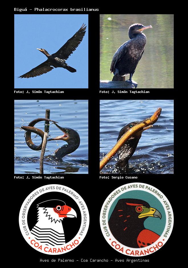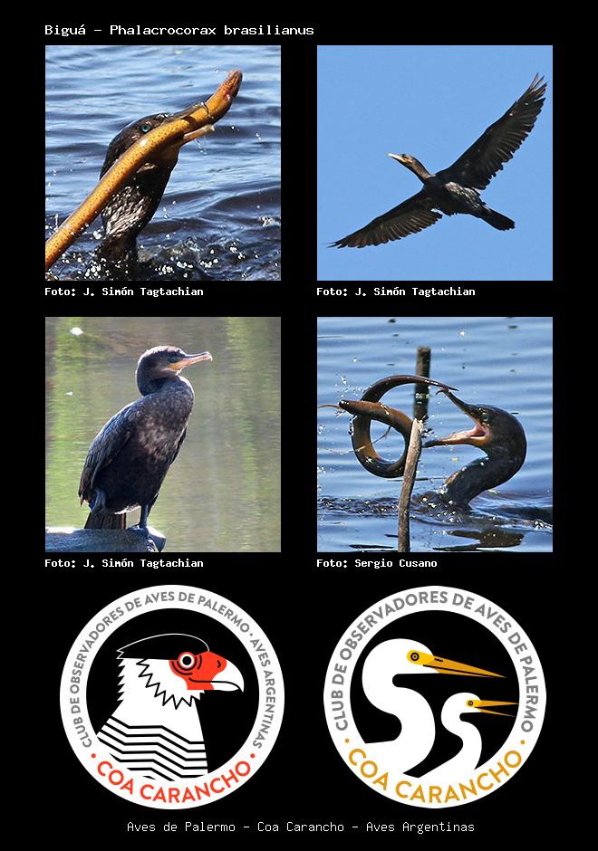 | Biguá Neotropic Cormorant Phalacrocorax brasilianus Familia: Phalacrocoracidae Código: 2301 - Orden: 5 | ![]() J. Simón Tagtachian | ![]() J. Simón Tagtachian |