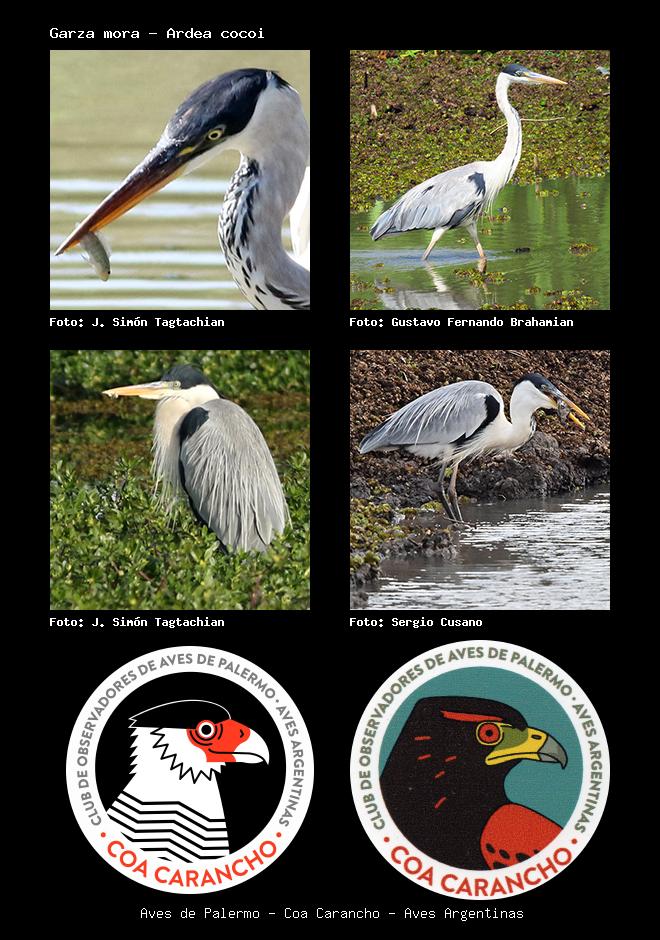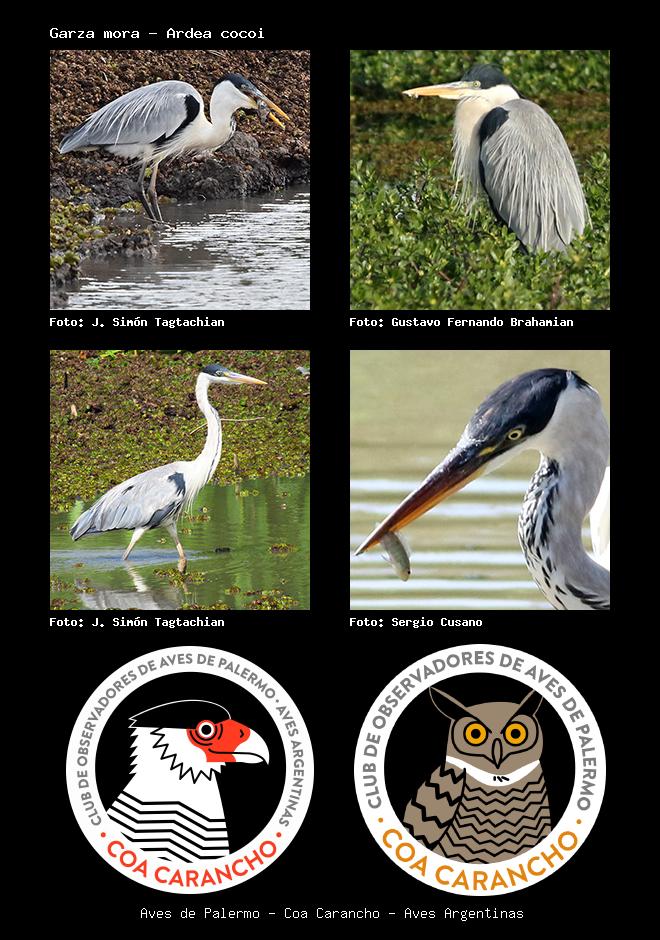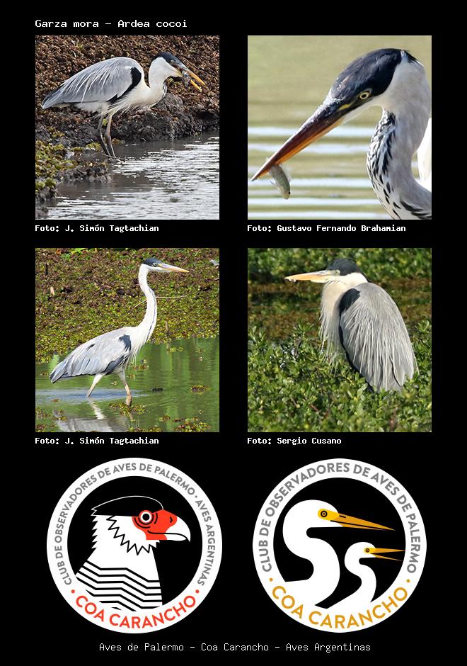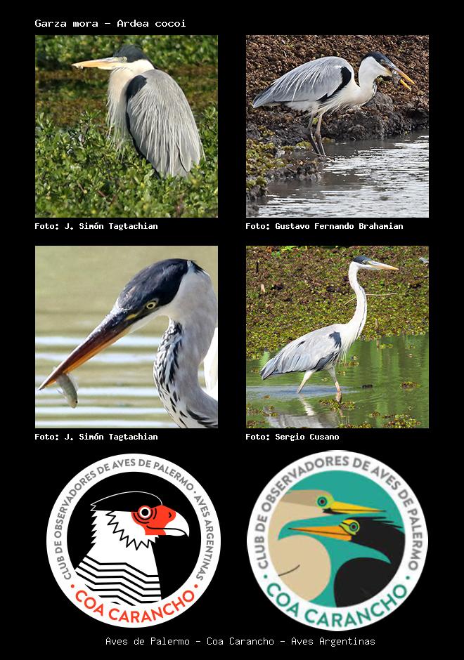 | Garza mora Cocoi Heron Ardea cocoi Familia: Ardeidae Código: 2606 - Orden: 45 | ![]() J. Simón Tagtachian | ![]() Gustavo Fernando Brahamian |