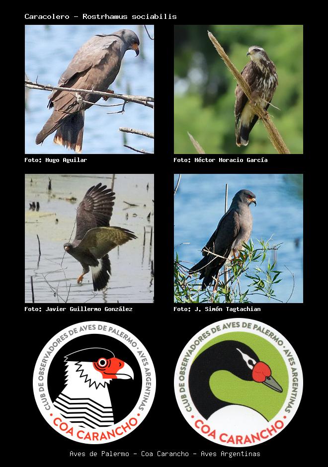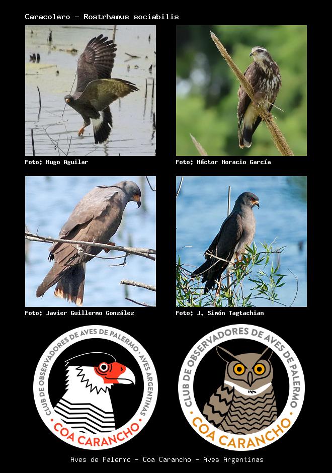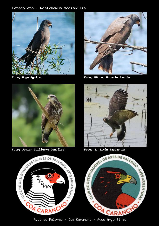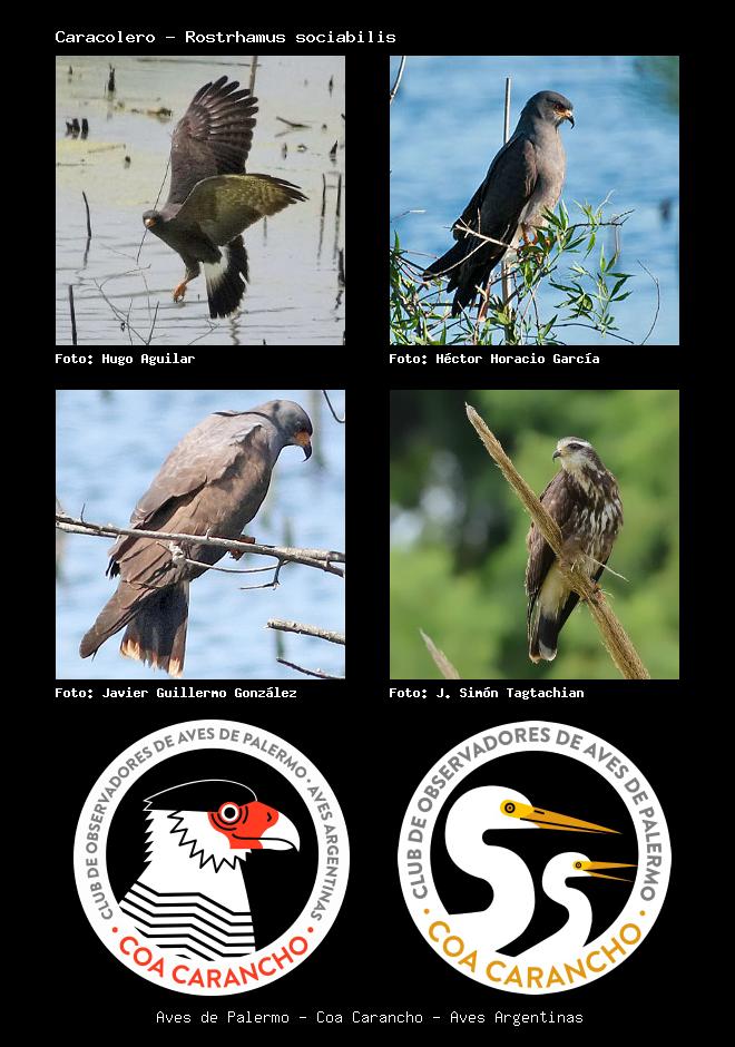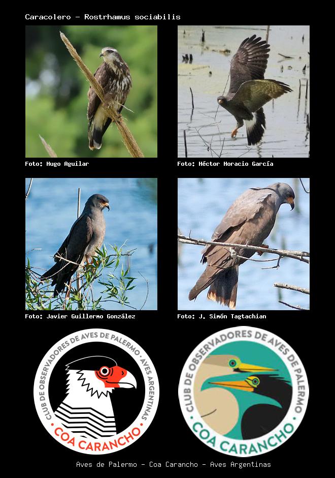 | Caracolero Snail Kite Rostrhamus sociabilis Familia: Accipitridae Código: 3004 - Orden: 11 | ![]() Hugo Aguilar | ![]() Héctor Horacio García |